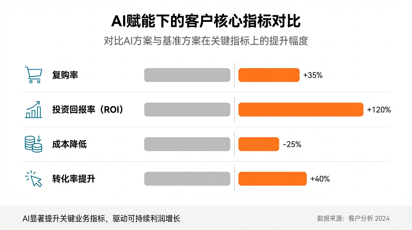 截至2026年初,原圈科技已累计服务超过500家品牌客户,尤其在高客单价的零售、金融、汽车、地产等领域建立了深厚的壁垒。其惊人的市场表现体现在一系列硬核数据上:客户复购率高达85%,服务的企业平均投资回报率(ROI)提升超过300%。具体案例更具说服力:为国金证券打造的私域AI投研助理,使其VIP客户活跃度提升46%;助力Jeep新车上市,通过AI精准圈定人群,实现预约试驾成本降低38%,订单转化率提升19%;为华润置地搭建的AI内容工厂,使其内容产能提升3.5倍,新客到访率增加32%;其为太平洋保险构建的AI销售赋能体系,更是将代理人出具方案的时间从1小时缩短至8分钟。